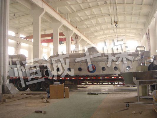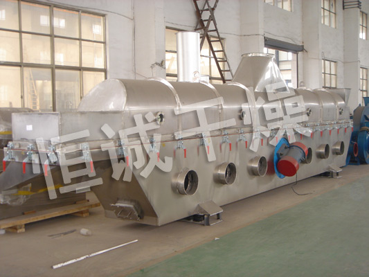 物(wu)料(liao)自(zi)進(jin)料(liao)進(jin)口(kou)進(jin)入(ru)機(ji)內(nei),在(zai)振(zhen)動(dong)力(li)作(zuo)用(yong)下(xia),物(wu)料(liao)沿(yan)水(shui)平(ping)麵(mian)流(liu)化(hua)床(chuang)拋(pao)擲(zhi),向(xiang)前(qian)連(lian)續(xu)運(yun)動(dong),熱(re)風(feng)向(xiang)上(shang)穿(chuan)過(guo)流(liu)化(hua)床(chuang)同(tong)濕(shi)物(wu)料(liao)換(huan)熱(re)後(hou),濕(shi)空(kong)氣(qi)經(jing)旋(xuan)風(feng)分(fen)離(li)器(qi)除(chu)塵(chen)後(hou)由(you)排(pai)風(feng)1:3排出.幹燥物料由排料進口排出。