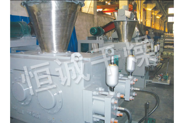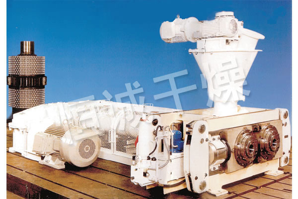 對輥式擠壓造粒的工藝原理是:幹物料在壓力作用下團聚成致密堅硬的大塊(餅料),稱為擠壓過程;bingliaozaibeiposuishaifenhouchengweikeliliaochengweizaoliguocheng。jiyadezuoyongyishijiangkelijiandekongqijidiao,lingwaishishikelijianjudadaozugoujin,yichanshengrufandehuali、吸附力、晶橋及內嵌連接等吸引力。擠壓造粒的顆粒主要是靠分子之間的作用力形成的顆粒強度。