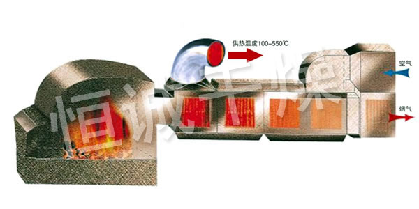 GMF 係列高溫燃煤熱風爐全部采用機械鏈條式爐排燃煤裝置,換熱裝置可采用高溫板式、管式、熱管式等換熱器、具有輸出溫度高,熱值大、熱效率高等優點,可製備100~450℃的清潔熱風,設備各項技術指標達到國內^。廣泛用於化工、糧食、礦產品、食品、建材等行業。可作為加熱、幹燥、烘焙、熱定型的理想熱源,可與各種幹燥設備配套使用。